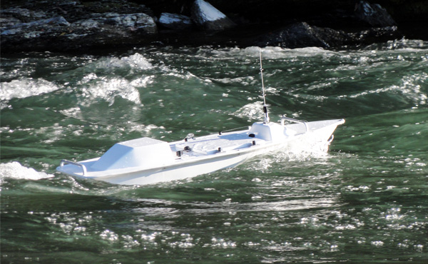 座標を入力するだけで自律走行し、河川測量やダム、浅瀬の港湾等の深浅測量をおこなってくれます。