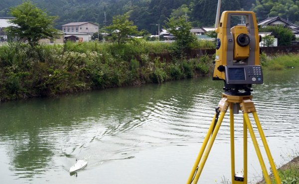 - ・山間部ダムや橋の下などGPSが受信できない場合は、自動追尾式トータルステーションを使い